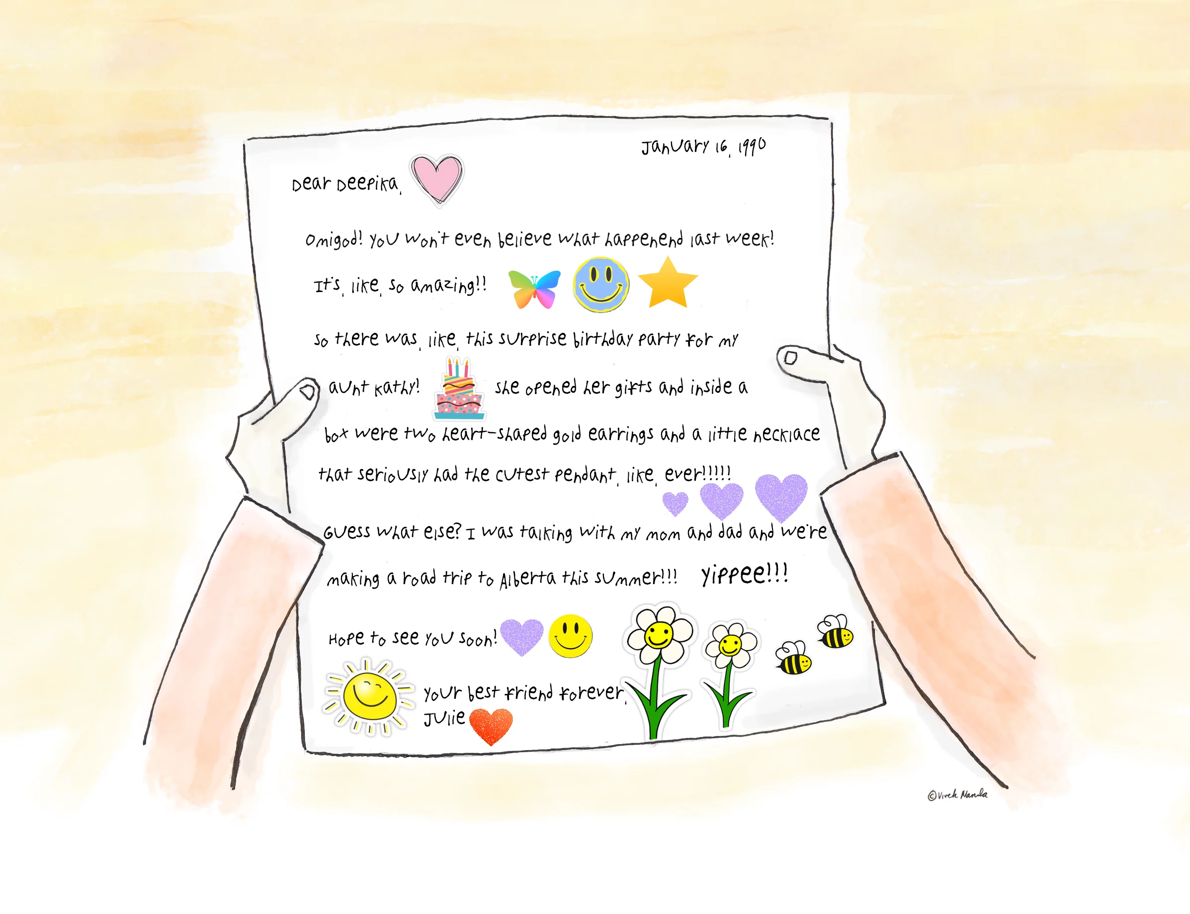 In the last couple decades the manner in which we communicate has changed so drastically it makes the experiences of even one generation ago sound archaic. For instance, I remember my second grade best friend moving away and the colourful sticker-covered correspondence letters we shared as she became my newest pen-pal. The coveted letters that came occasionally in the mail were my only links to her. As I got older the telephone was my lifeline out of the house, but I had to share it with my entire family. I remember constant lectures from my parents about the bills I racked up. Long-distance wasn’t cheap. If you’re my age or older, this all sounds normal, but try talking to a high school student about it - trust me, they look at you like you’re from another planet.